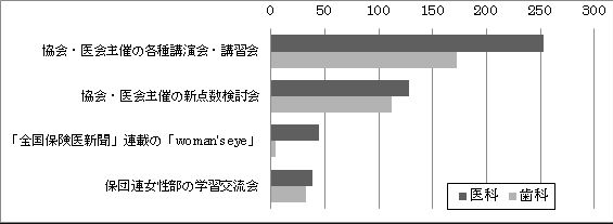 医科・歯科別に見ると、歯科は新点数検討会や学習交流会の認知・参加度が高かったが、「Women’s eye」の認知・参加件数は4件に留まった。