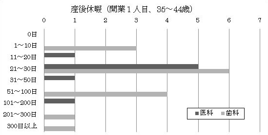 同産後休暇は「21~30日」11件(医科5、歯科6)が最多となり、女性開業医は今なお苛酷な状況に置かれていることが分かる。