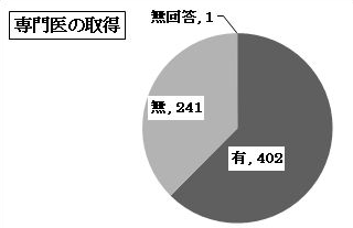専門医・認定医は64.3%(医科83.5%、歯科23.2%)が取得しており、取得していない人のうち1割は今後取得の予定が「あり」または「条件次第」と回答している。