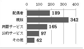 介護への支援は「あった(ある)」66.5%、「なかった(ない)」7.2%。支援者は「親族」「民間サービス」がともに30.5%で6割を占め、次いで「公的サービス」20.3%、「配偶者」12.2%となった。